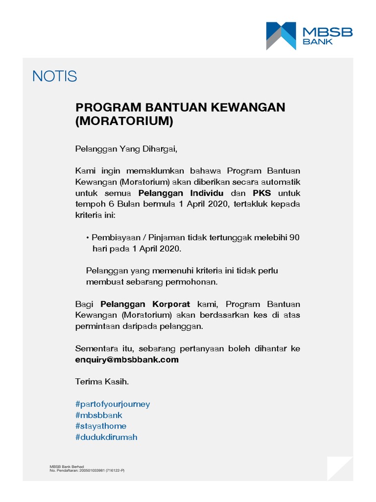 Mbsb Moratorium / 1 / Walaupun moratorium telah berakhir, mbsb bank memberikan bantuan kepada pelanggan yang memerlukan melalui program fleksibiliti pembayaran untuk kumpulan bersasar.